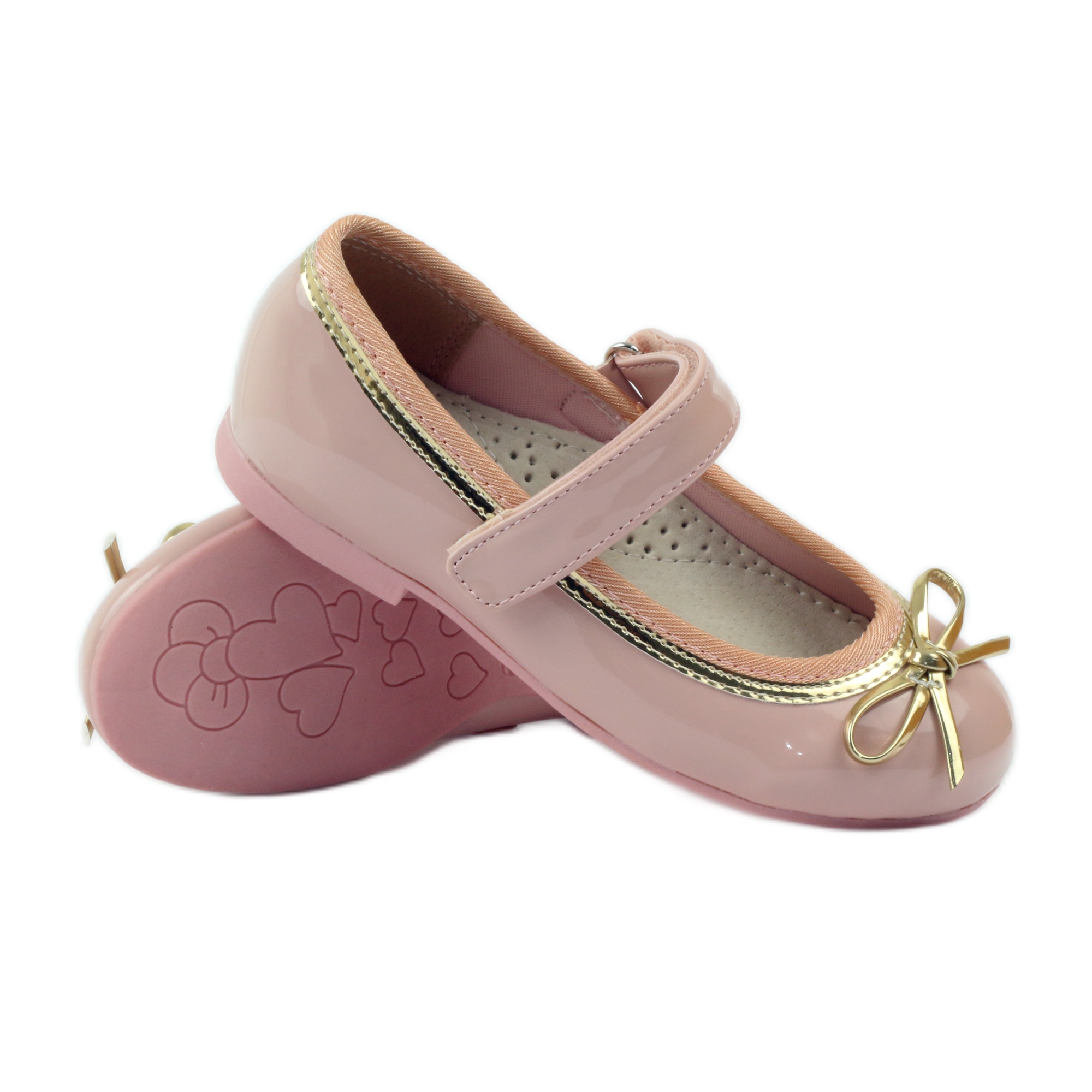 A púderrózsaszín amerikai masnival ellátott balerinapumpák tökéletes választás a legfiatalabb lányok számára, akik értékelik a stílust és a kényelmet egyaránt. Kiváló minőségű ökológiai bőrből készült, ez a bájos cipő tartós és könnyen tisztítható. A bőrbetét megfelelő szellőzést biztosít, ami rendkívül fontos tevékenység közben.