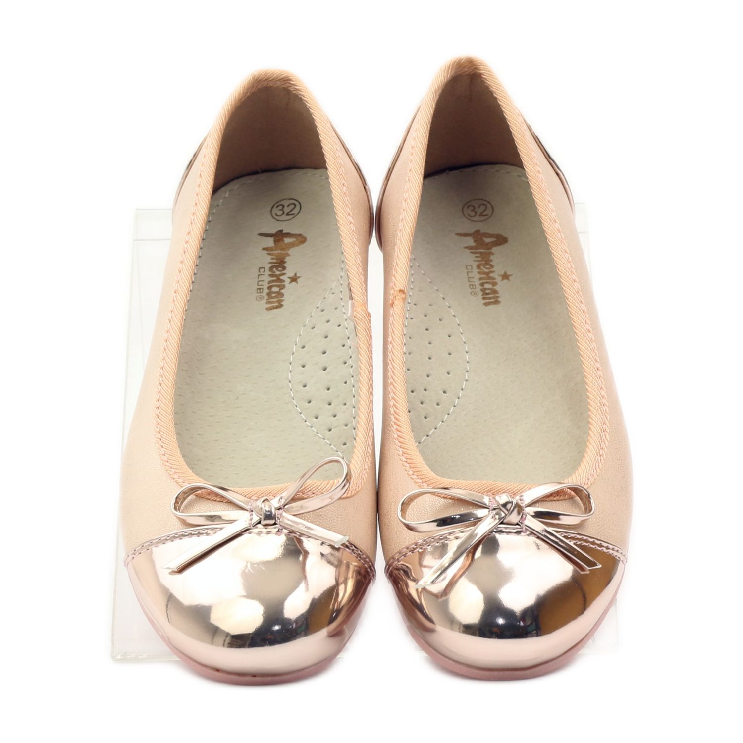 Fedezze fel az American Club elbűvölő balerinapumpáit, amelyek minden kis hölgynek biztosan örömet okoznak! A wz.14297 modellt a színek egyedi kombinációja jellemzi: púderrózsaszín, arany és fehér, ami tökéletessé teszi különféle alkalmakra.