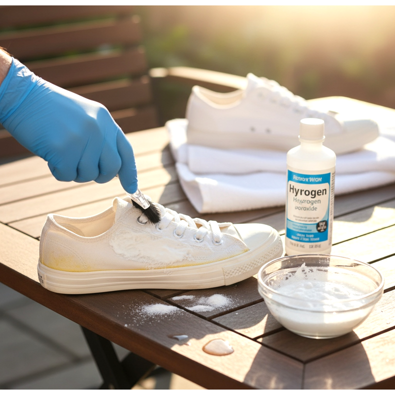 A sárgulás ellen az egyik legjobb gyógymód a hidrogén-peroxid és a szódabikarbóna keveréke. Ez a kombináció olyan fehérítő tulajdonságokkal rendelkezik, amelyek eltávolítják az elszíneződéseket az anyag károsítása nélkül. Vigye fel a keveréket a szennyezett területre, hagyja 20-30 percig a napon (az UV sugárzás aktiválja a fehérítő tulajdonságokat), majd alaposan öblítse le vízzel. Ez a módszer szintetikus és vászon anyagokon működik a legjobban.