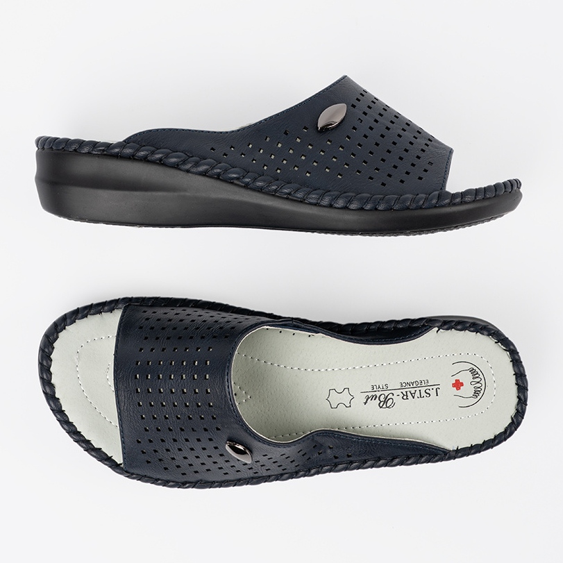 Részletek: A haditengerészet női papucs bőr betéttel kék