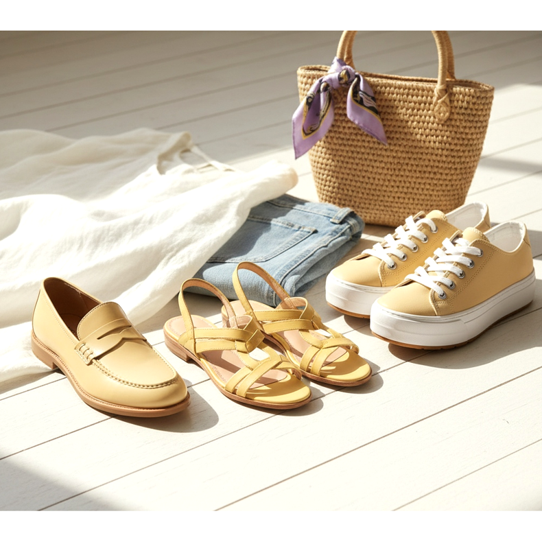A 2026-os tavaszi/nyári szezon első számú színe a vajsárga – meleg, vajassárga, amely úgy néz ki, mintha napfényben fürödne. Nem rikító neonsárga, hanem finom, krémes, vajra vagy vaníliakrémre emlékeztető árnyalat. Kiválóan működik lábbelikkel – az ebben a színű szandálok, cipők és tornacipők frissességet és optimizmust kölcsönöznek a stílusnak.