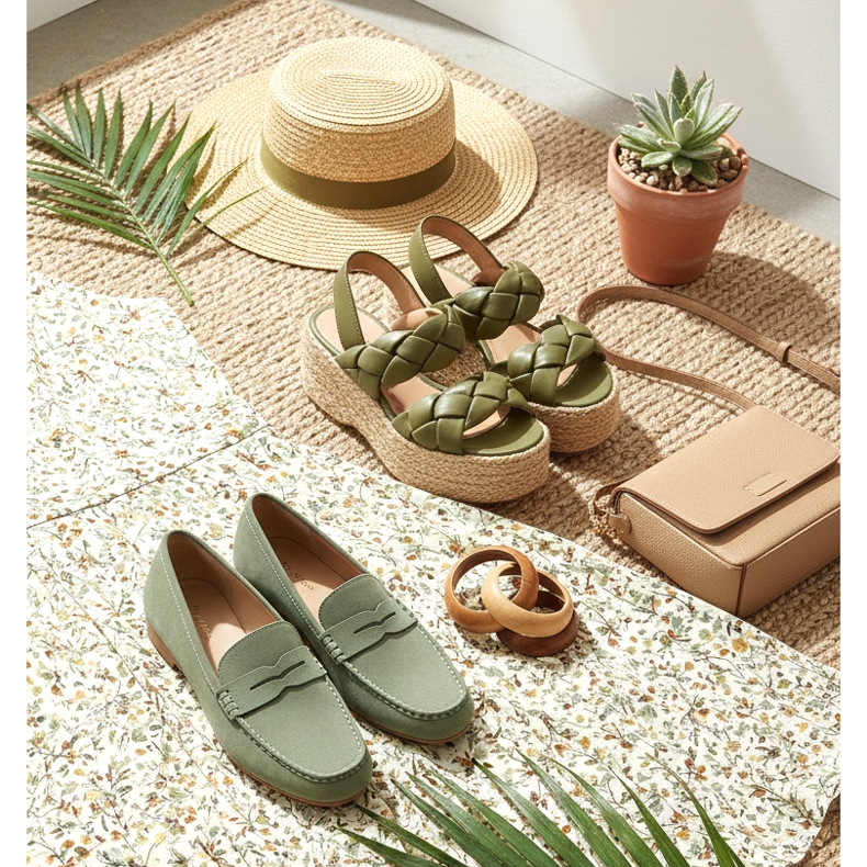 A zöldek rendkívül lenyűgözőek a lábbeliben. A zsálya színű velúr naplopók elegáns alkalmi slágerek, az olíva színű platformszandál pedig tökéletesen kiegészíti a virágos nyári ruhát. A zöld gyönyörűen kombinálható barnával, bézssel, krémmel és fehérrel.