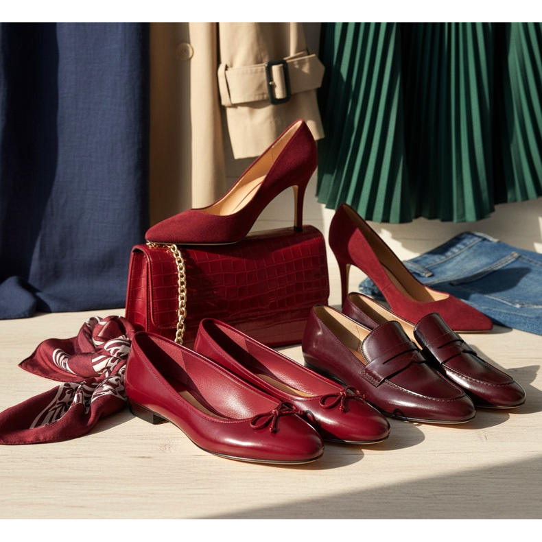 A 2026-os tavaszi/nyári szezonban a vörös a tüzes, rikító tónusoktól a mély, érett árnyalatok felé fordul. A cseresznyepiros és a bordó színek, amelyek eleganciát és karaktert kölcsönöznek minden stílusnak. Az ilyen színű cipők tökéletes alternatívája a feketének - ugyanolyan univerzális, de sokkal érdekesebb.