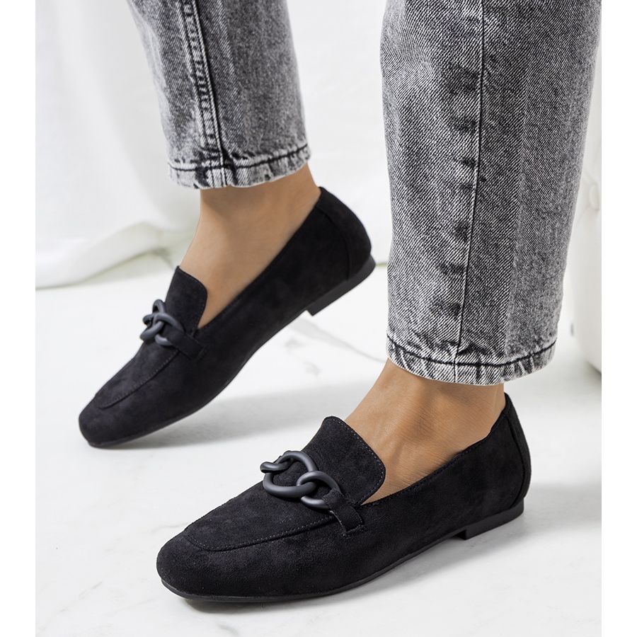 Az elegáns és univerzális Dante cipő kötelező minden olyan nő ruhásszekrényében, aki értékeli a kényelmet és az időtlen stílusot. A nagy minőségű ökológiai velúr bőrből készült felső, klasszikus fekete színű, szépen elrendezve a lábán, és az kissé lekerekített orr optikailag vékony a láb. A természetes bőr betét a nap folyamán biztosítja a lélegzhetőséget és a kényelmet, és a gumi talp garantálja a jó tapadást és a tartósságot.