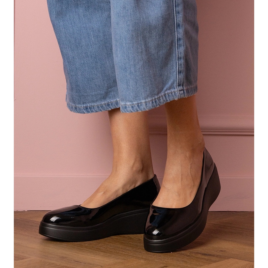 Részletek: A platformon lakkozott fekete cipő