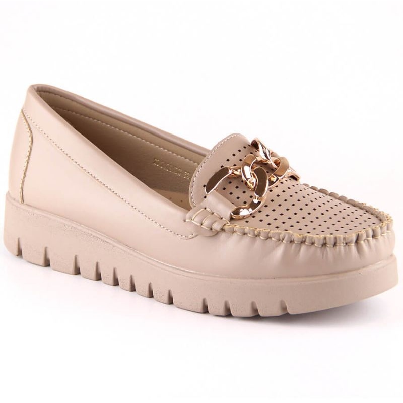 Bemutatjuk a neves Potocki márka legújabb ajánlatát - platform mokaszinok lánccal, YQ21021 modell, klasszikus bézs színben. Ezek az elegáns és kényelmes cipők tökéletes kiegészítői lesznek minden nő mindennapi stílusának, aki értékeli a divat és a kényelem kombinációját.