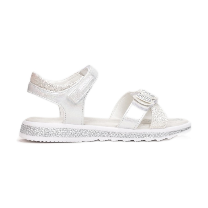 A lábujjaknál található elegáns pántok keresztben vannak, és stílusos, cirkónium-utánzatú masnival díszítik, amely egyedi fényt kölcsönöz a szandálnak. A talp oldala és a csillámmal borított díszítőelemek igazi sztárnak varázsolnak minden kis fashionistát.