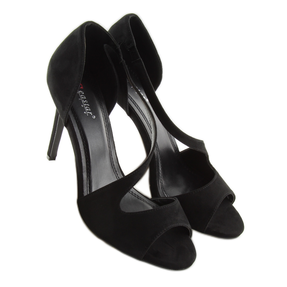 Ezek a fekete pumpák tökéletes választás esti kirándulásokhoz és hivatalosabb alkalmakra egyaránt. Minden bizonnyal kedvenc párja lesz a lábbelikollekciódnak, és minimalista, minta nélküli kialakításukkal könnyen illeszthetők a különböző stílusokhoz. Fedezze fel az érzékiséget és az eleganciát ezzel az egyedi szandállal!