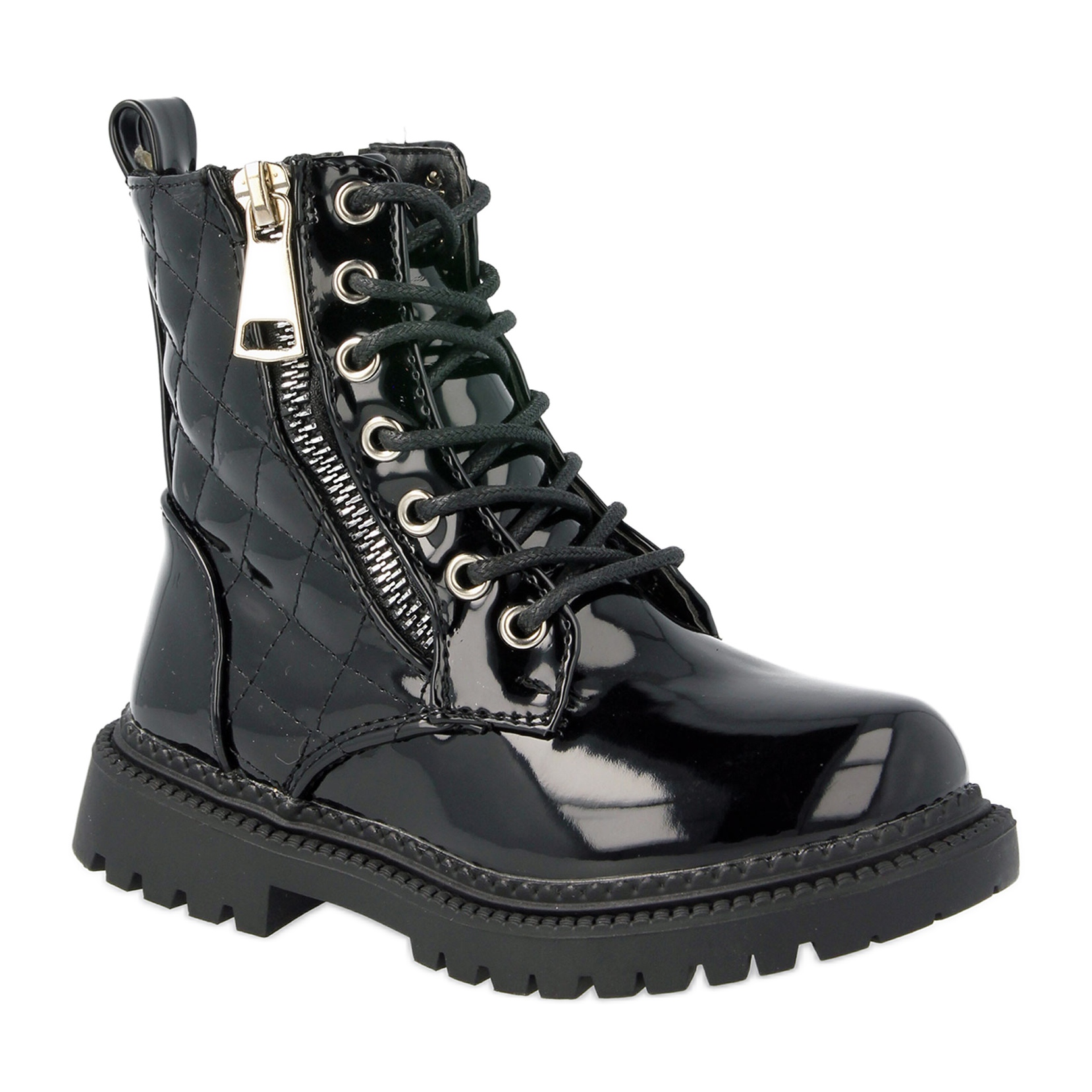 A kiváló minőségű ökológiai lakkbőrből készült csizma kiváló megjelenést és tartósságot biztosít. A puha szőrzet formájú szigetelés melegséget és kényelmet garantál, ami különösen fontos a téli napokon. A klasszikus fűzés lehetővé teszi a tökéletes illeszkedést a lábfejhez, a felsőrész oldalán található praktikus cipzár pedig megkönnyíti a fel- és levételt.