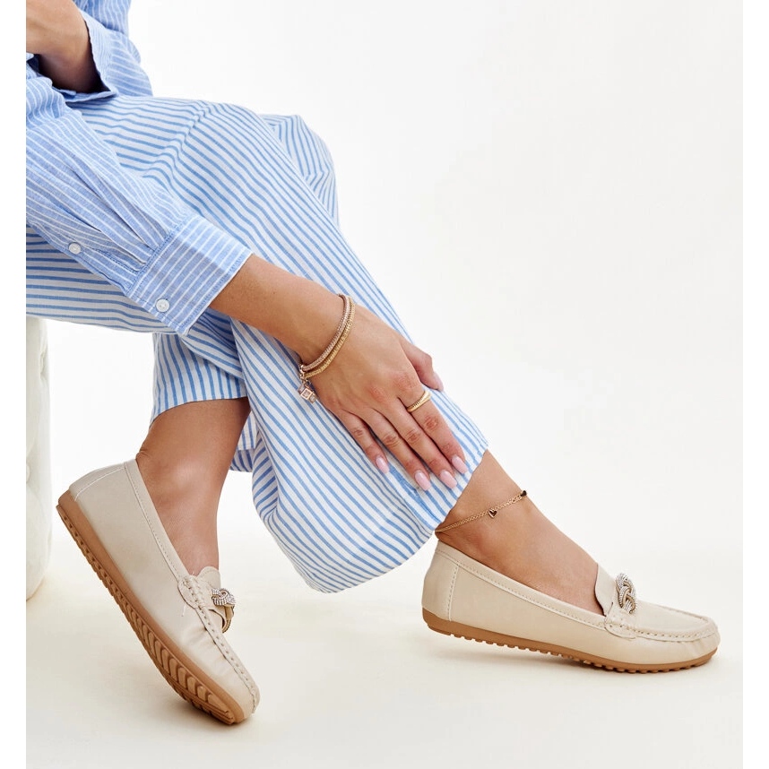 Inna marka Adiba strasszokkal díszített bézs mokaszinok