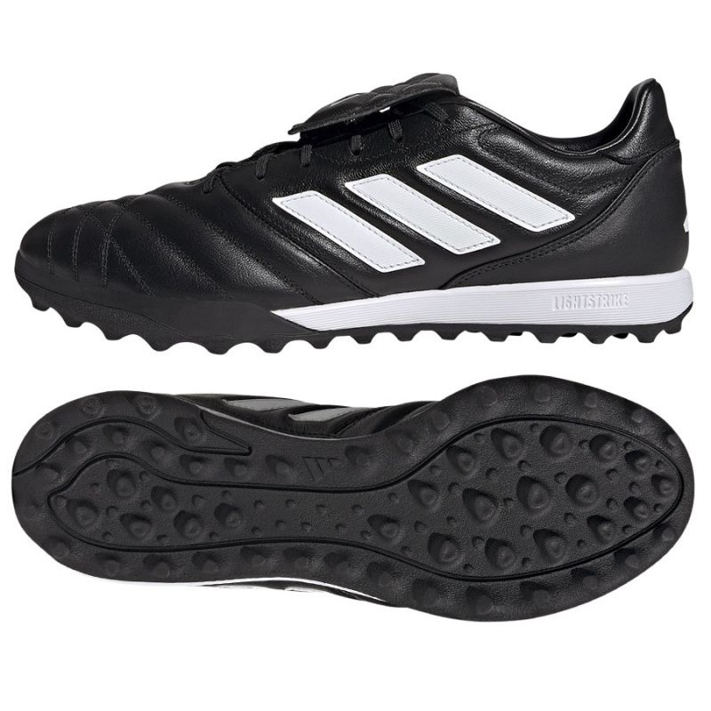Adidas Copa Glovo TF (FZ6121) Football cipő - Klasszikus egy modern kiadásban. A fekete, alacsony turfy modell, amelyet mesterséges felületeken való játékra terveztek, kombinálva a lágy, természetes bőrt a kényelemmel és a tartóssággal.