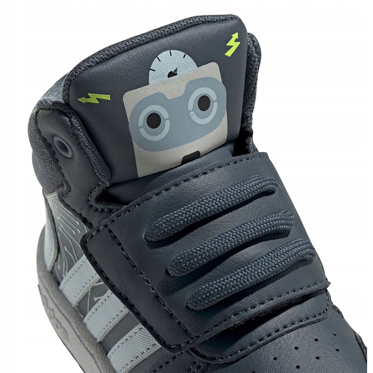 Fedezzen fel új sportcipőket gyermeke számára - adidas Hoops Mid 2.0 I Jr FW4925 cipőket. Ezek az egyedi cipők ötvözik a stílust és a kényelmet, elragadtatva a modern dizájnnal és praktikus kidolgozással. Magas felsőrészük van, amely további tartást biztosít a bokának, a merev sarok pedig stabilitást garantál a mindennapi tevékenységek és játékok során.