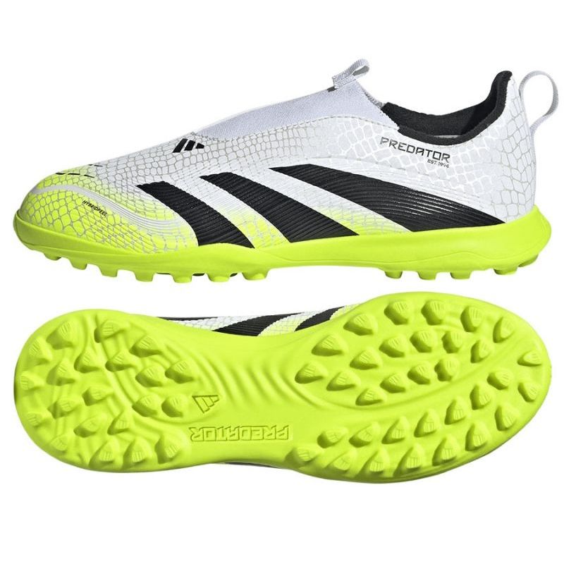 Az Adidas Predator League LL JR TF (JI1153) cipője nagyszerű választás azoknak a fiatal játékosoknak, akik a stílust a legmagasabb teljesítménygel akarják kombinálni a pályán. A pontos felvételekhez és a maximális vezérléshez tervezték ezeket a sportgyököket egy hibridfeel felső részével felszerelték, amely nem igényel csipkéket. A konvex textúrának és az innovatív Strikescale overlaysnek köszönhetően kiváló tapadást és támogatást nyújtanak a játék során.