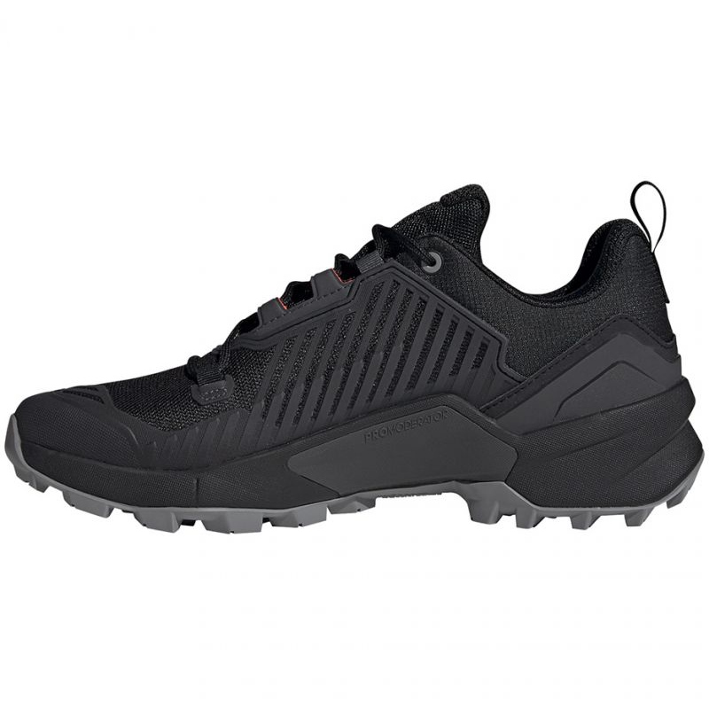 Az Adidas Terrex Swift R3 FW2776 fekete férfi cipő tökéletes választás a túrázás és a szabadtéri tevékenységek szerelmeseinek. Az ultrakönnyű és strapabíró vízálló anyagból készült felsőrésznek köszönhetően ezek a cipők kiváló védelmet nyújtanak változatos terepen való túrázáskor.