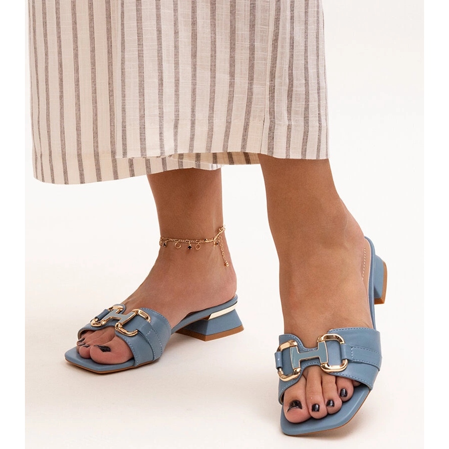 Részletek: Alacsony sarkú flip-flop dekoratív Luara csattal kék