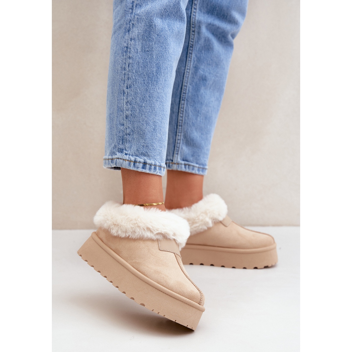 Inna marka Alacsony szárú hócsizma szőrmével Eco Suede platformon, világos bézs