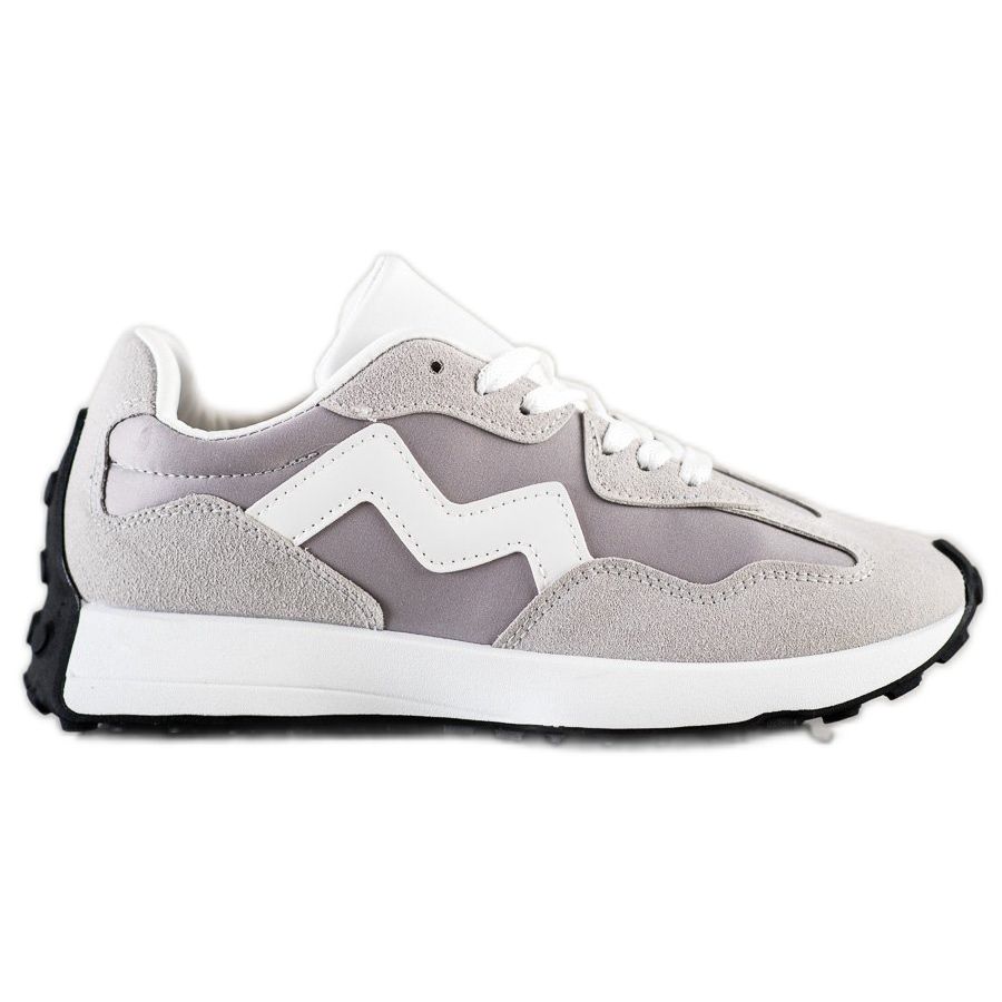 A cipők szürke árnyalata fehér betétekkel kombinálva modern és friss megjelenést kölcsönöz nekik. A magas, 3 cm magasságú platform további kényelmet biztosít a viselés során, a taposott gumitalp pedig jó tapadást garantál különféle felületeken, így bármilyen alkalomra tökéletes - a városi sétáktól a mindennapi feladatokig.