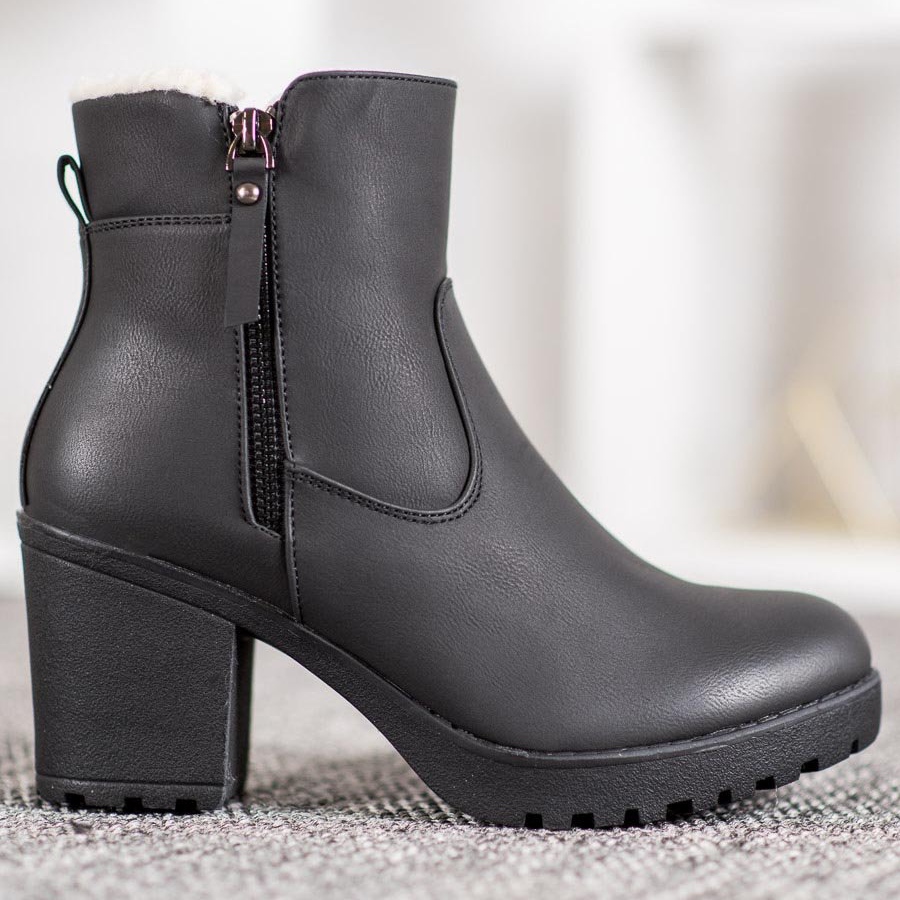 A csizmák beépített és merevített sarokkal rendelkeznek, amely biztosítja a stabilitást és a viselési kényelmet. A kerek orr klasszikus megjelenést kölcsönöz nekik, a dekoratív cipzár pedig nemcsak praktikussá, hanem divatossá is teszi őket. Ezenkívül a műanyag futófelülettel ellátott talp jó tapadást biztosít, ami növeli a biztonságot különböző felületeken.