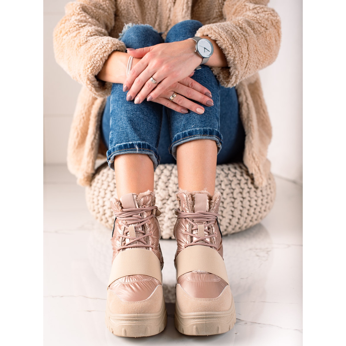A TRENDI hócsizma kiváló választás azoknak a nőknek, akik értékelik a divatos megjelenést és a mindennapi kényelmet. A cipzár és a fűzés megkönnyíti a cipők fel- és levételét. Ez a bézs bokacsizma remekül passzol minden téli ruhához, a farmertől a meleg pulóverig.