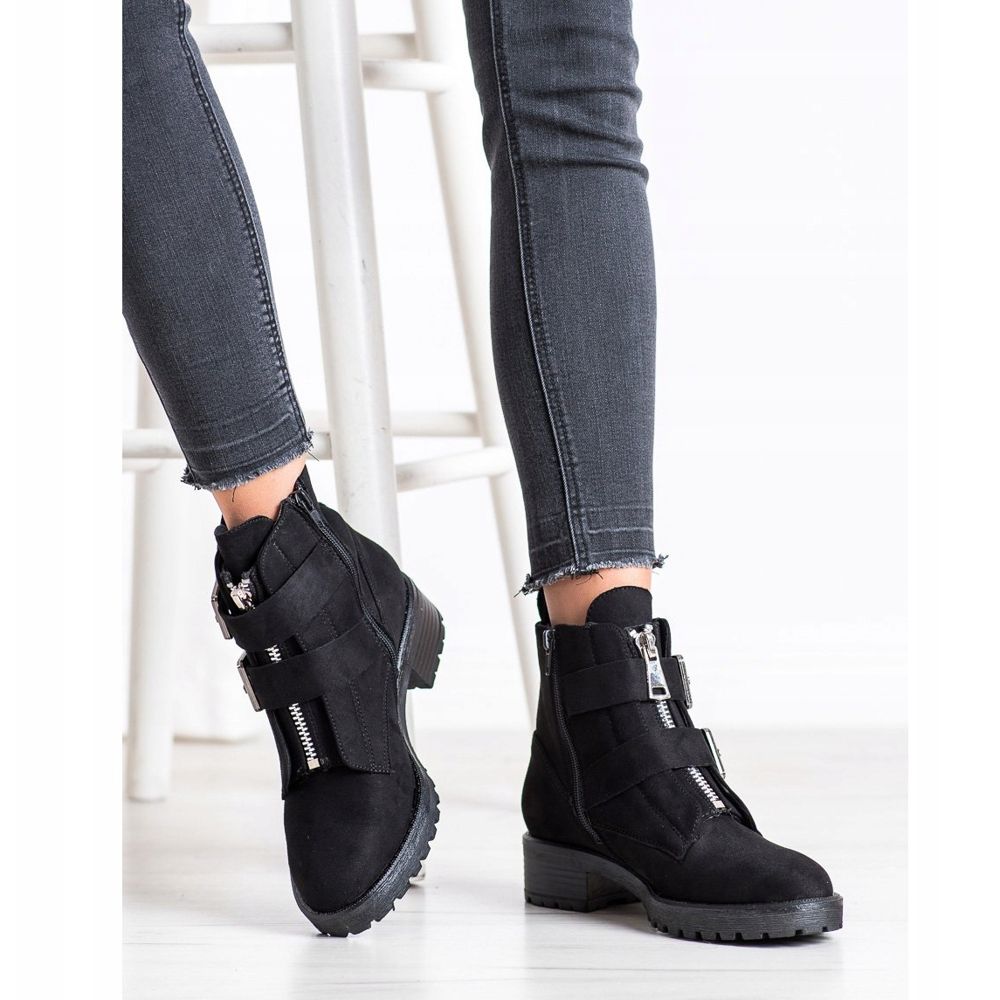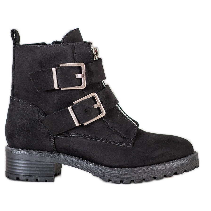 A felsőrész kiváló minőségű ökológiai velúrbőrből készült, amely nemcsak divatos megjelenést, hanem tartósságot is kölcsönöz nekik. Belül egy textilbetét található, amely egész napos viselési kényelmet biztosít. A dekoratív csatok és a cipzár egyedi stílust adnak a táskáknak, klasszikus fekete színükkel pedig sokféle öltözékhez passzolnak.