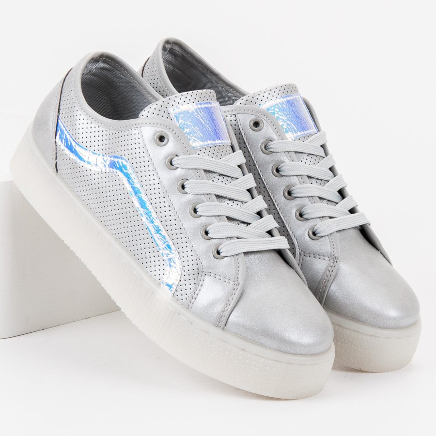 Fedezze fel az egyedi stílust és viselési kényelmet a SHELOVET szürke és ezüst színű alkalmi női cipőivel. Ezeket a divatos sportcipőket nyitott orr és perforált anyag jellemzi, amely lehetővé teszi a láb szabad lélegzését, így tökéletes a melegebb napokra.
