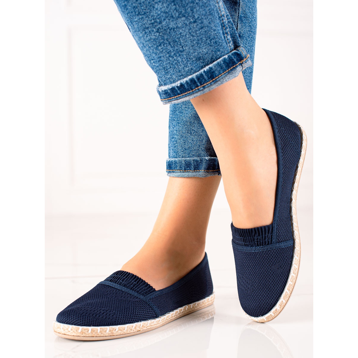 Fedezze fel a kényelmet és a stílust a TRENDI lezser sötétkék espadrilláival. Ezek az elegáns női cipők, amelyek tökéletesek tavaszra és nyárra, ötvözik a modern dizájnt a mindennapi funkcionalitással. 100%-ban textil anyagból készültek, így kényelmes viseletet biztosítanak, amelyet minden lépésnél értékelni fog.
