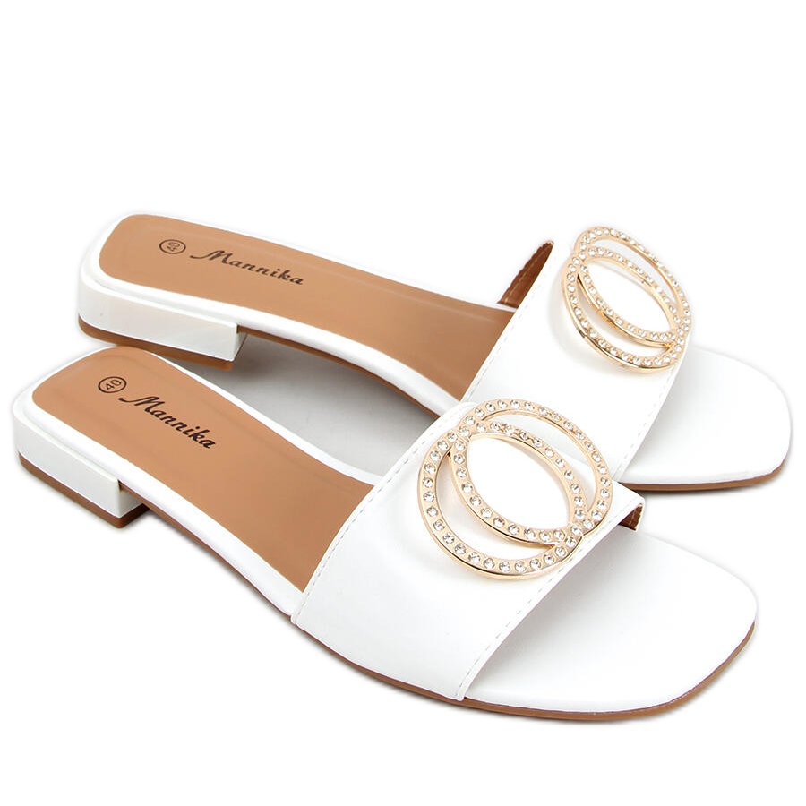 Fedezze fel az Allor White női papucsokat, amelyek a stílus és a kényelem tökéletes kombinációi. Ez a lapos talpú, széles pánttal és szemet gyönyörködtető kövekkel díszített modell egy klasszikus, amely soha nem megy ki a divatból. A fehér Allor papucsok tökéletesen illeszkednek az aktuális trendekhez, miközben kényelmes használatot biztosítanak.