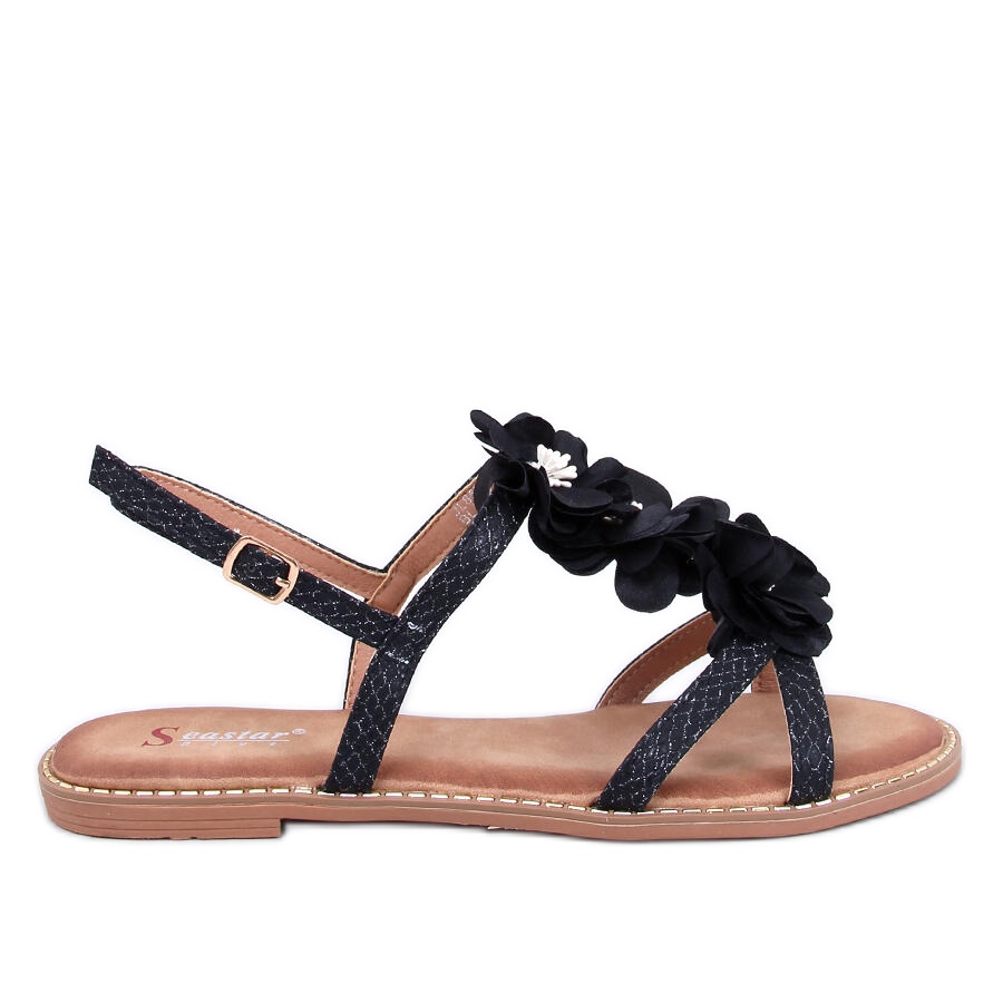Részletek: Amaur fekete szandál finom virágokkal
