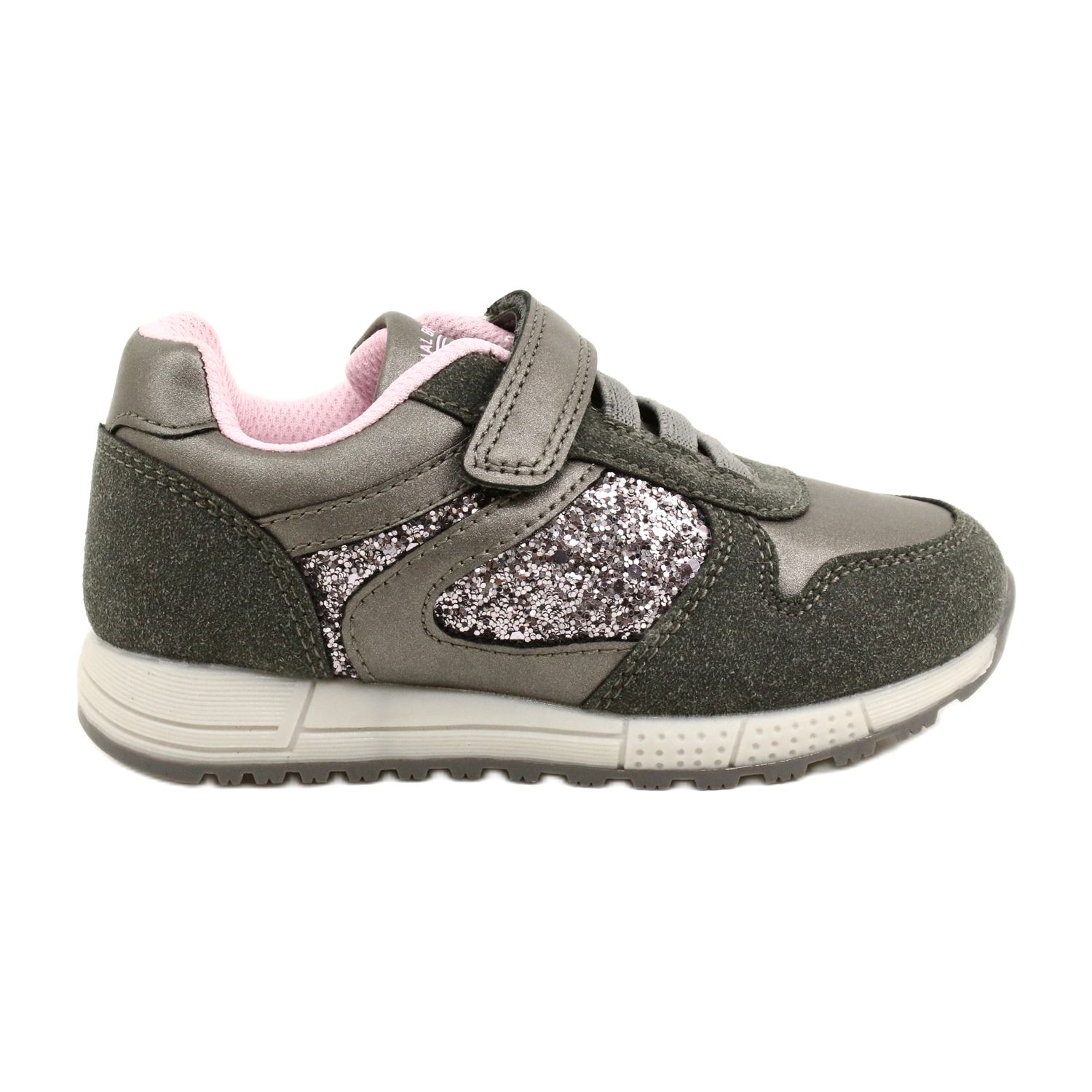 American Club ES40 Gyerek sportcipő - Stílusos, kényelmes és tartós lábbeli a lányok számára. Az ökológiai bőr elemeivel ellátott szürke-ezüst felsők egyesítik az univerzális eleganciát a modern, lányos akcentussal, finom, rózsaszín belső formában. Az érdekes formatervezés minden bizonnyal vonzó lesz egy kis ügyfél számára.