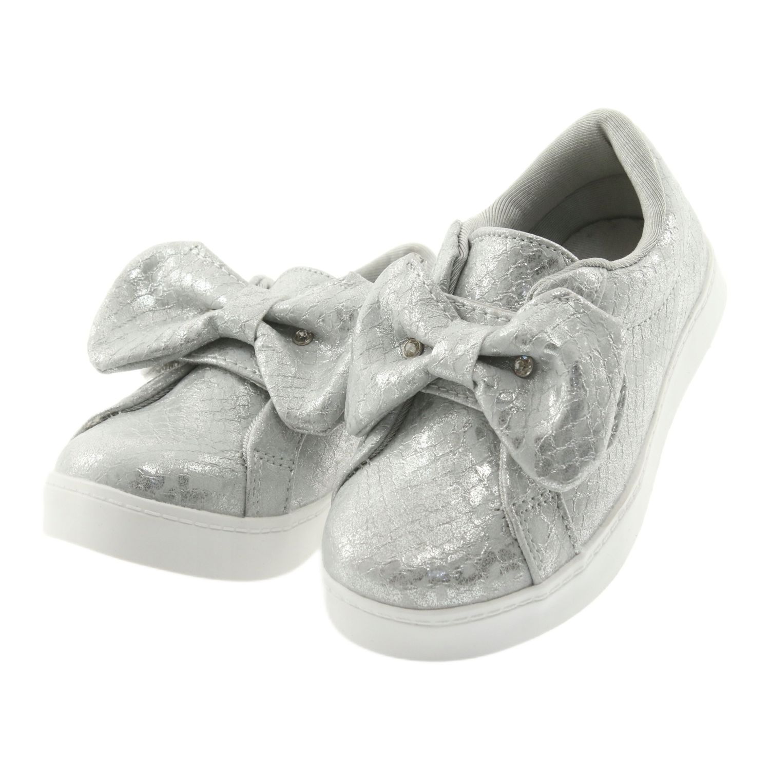 Fedezze fel a rendkívüli AMERICAN CLUB ES23 sportcipőt, amely minden kis divatteremtőt elragad! Egyedi dizájnjuk és flitterekkel díszített masnijuk tökéletes kiegészítőjévé teszi minden gyermekstílusnak. Ökológiai bőrből készült, amely a kígyó bőrére emlékeztet, elegáns ezüst árnyalatban, ötvözi az esztétikát a viselési kényelemmel.
