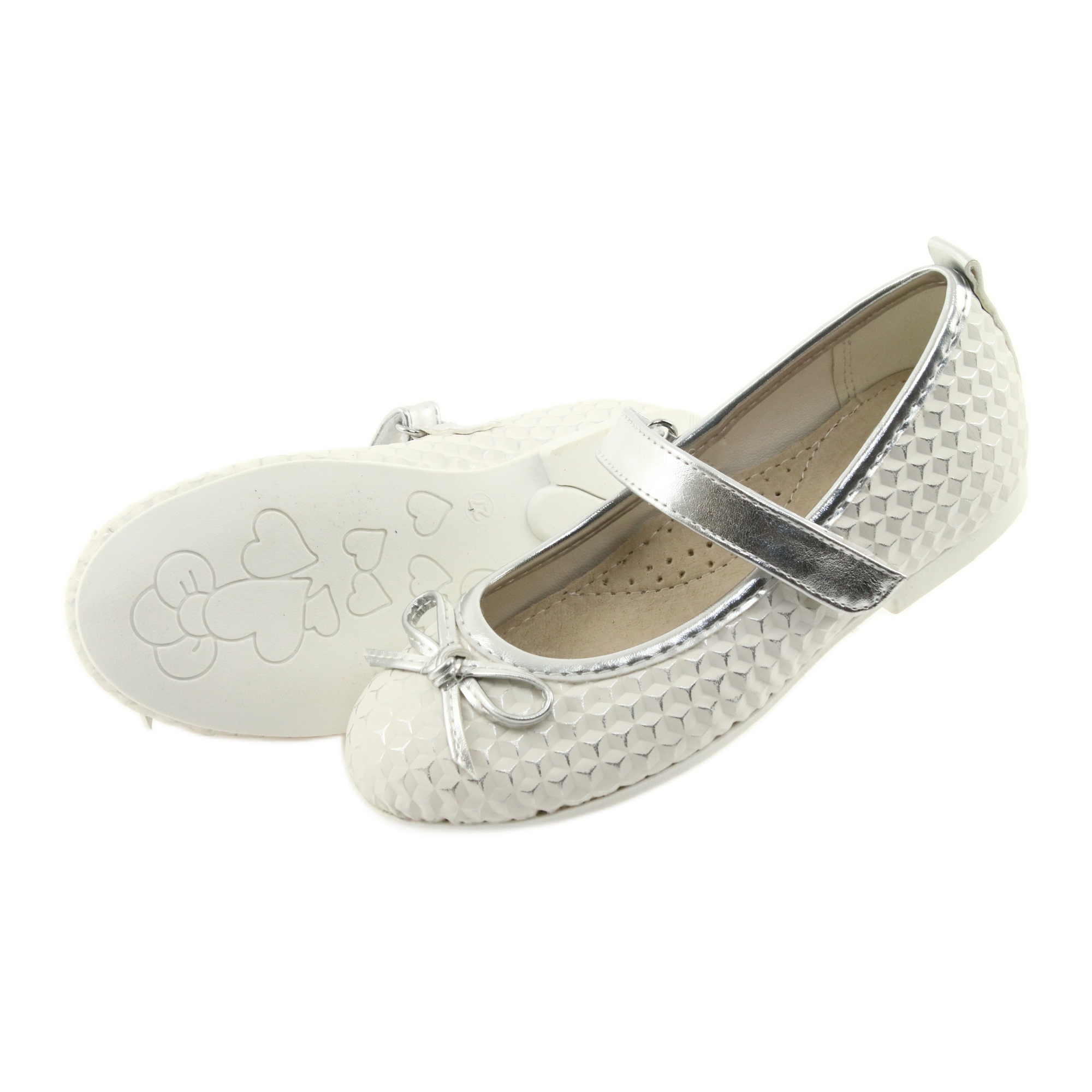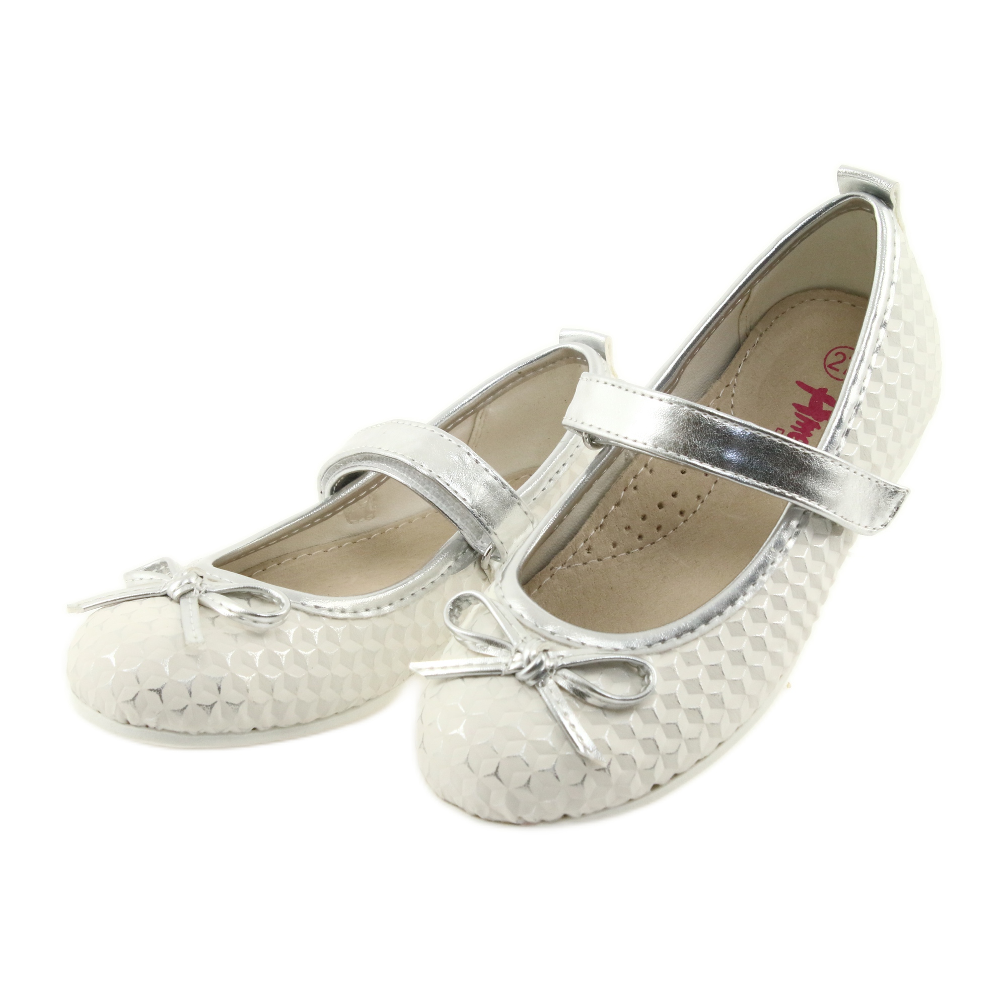 Az American Club GC16 tépőzáras balerina pumpák tökéletes választás egy kislány számára, aki minden lépésben értékeli a kényelmet és az eleganciát. Ezek a cipők kiváló minőségű ökológiai bőrből készültek, stílusos fehér és ezüst árnyalatban, így alkalmasak a különböző stílusokhoz - mindennapi és elegánsabb.
