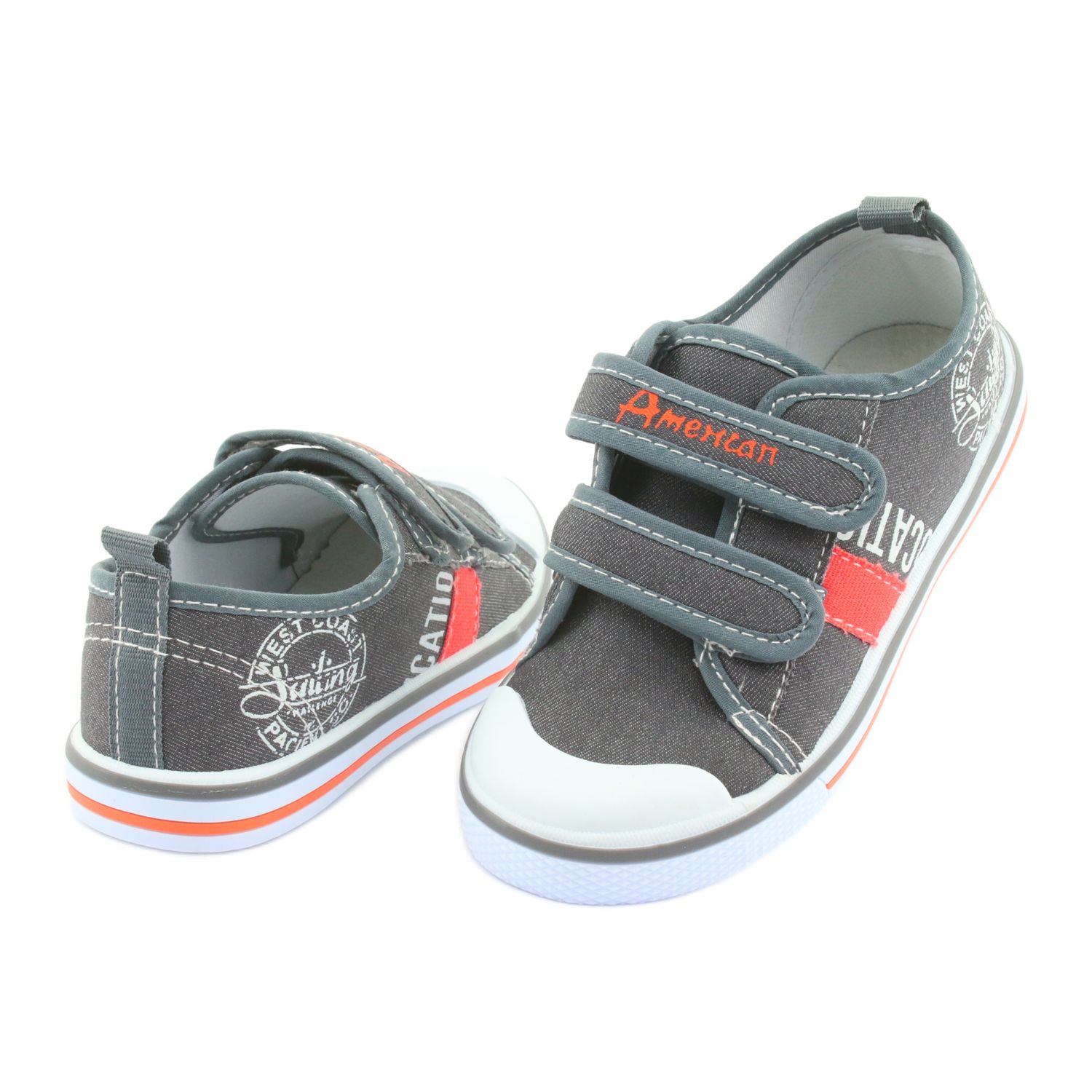 Bemutatjuk az American Club tépőzáras tornacipőt a szürke farmer divatos kombinációjában, fehér és narancssárga díszítéssel - a tökéletes választás dinamikus fiúk számára! A TEN 07/01/19 modell a stílus és a kényelem garanciája. A kiváló minőségű textilanyagból készült cipők tartósságot és viselési kényelmet biztosítanak.