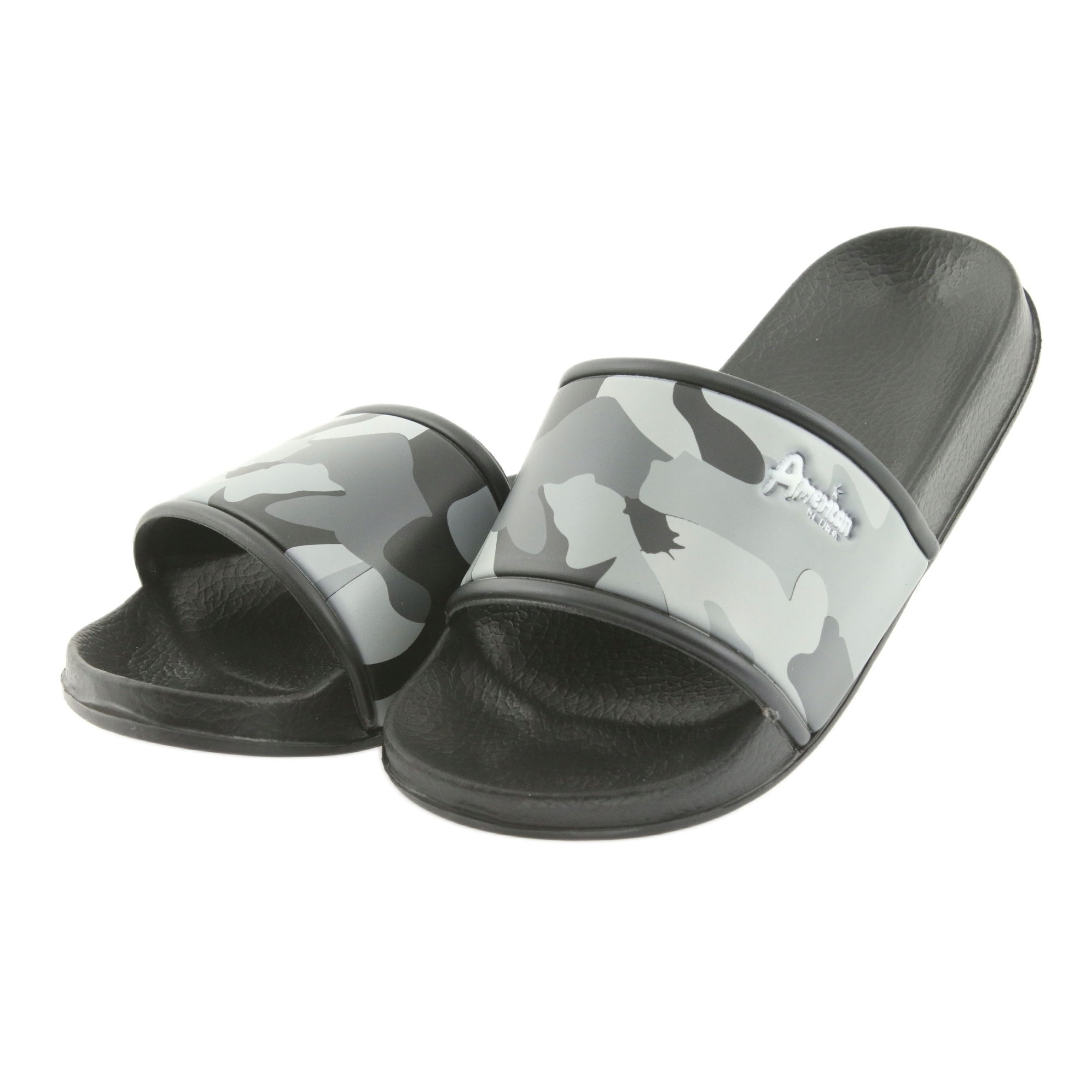 A szürke és fekete árnyalatú American Club profilú terepszínű papucsok tökéletes választás a meleg napokra, amelyek minden bizonnyal pótolhatatlanok lesznek otthon és a szabadban egyaránt. A kiváló minőségű ökológiai bőrből készült flip-flopok a tartósságot és a viselési kényelmet ötvözik, megfelelő tartást biztosítva lábának.