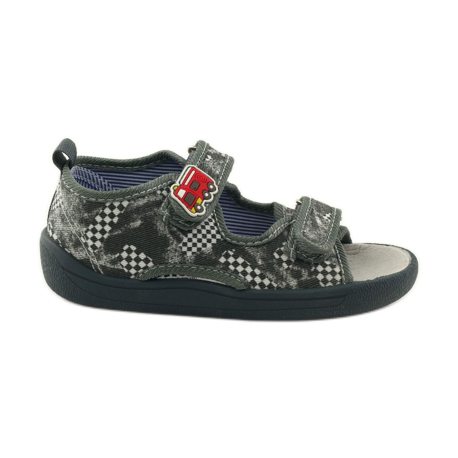 A klasszikus és praktikus American Club WZ.401/2018 szandálpapucs tökéletes választás kisfiúknak. Kiváló minőségű textilanyagból, elegáns fehér sakktábla mintával, tépőzáras tűzoltóautó applikáció formájában további akcentussal felhívják magukra a figyelmet és remek kiegészítői lesznek az óvodai gardróbnak.