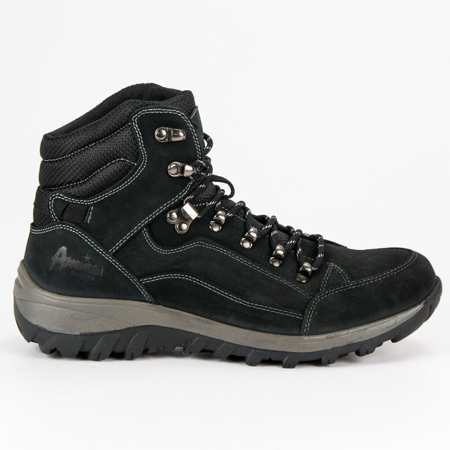 Az American Club fekete bőr trekking cipő praktikus és elegáns cipő a hidegebb hónapokra - meleg, stabil és tartós, tökéletes a mindennapi használatra.