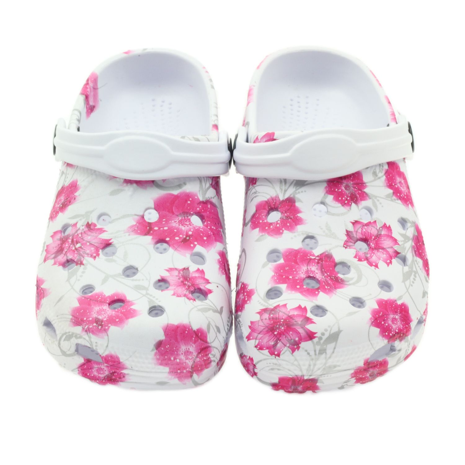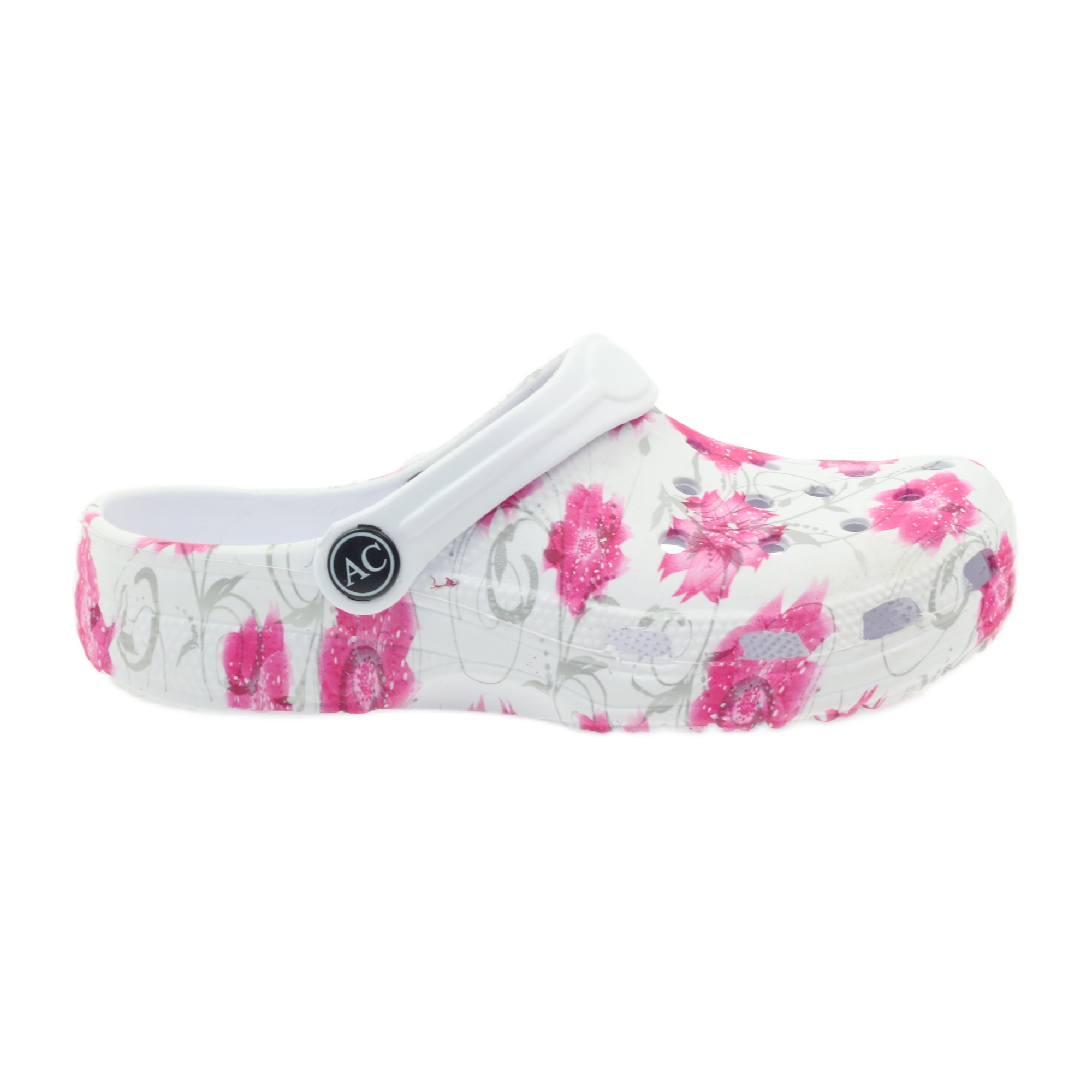 Részletek: American Club Amerikai gyerekpapucs kroks virágok fehér szürke rózsaszín