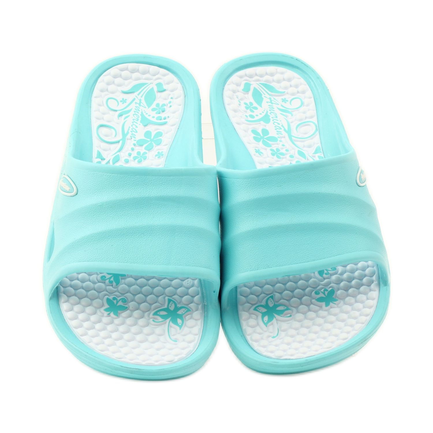 Az American Club menta és kék színű habos vízflip-flopok tökéletes választás a nyári vízi kirándulásokhoz. Könnyű szerkezetüknek köszönhetően ezek a női papucsok maximális kényelmet biztosítanak, tökéletesek a strandon, a medencében vagy az udvaron való pihenéshez.