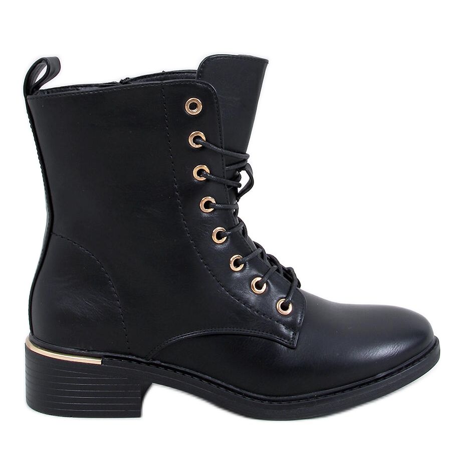 Nagy minőségű ökológiai bőrből készült, ezek a csizmák nemcsak esztétikát, hanem a környezetet is gondoskodnak. A cipő belsejét finom szőrrel párnázzák, amely a hűvösebb napokon kellemes melegítést biztosít. A klasszikus fekete színű és arany kiegészítők a csizmákat tökéletesen összekeverik a különféle stilizációkkal, az alkalmi és az elegánsabbak.