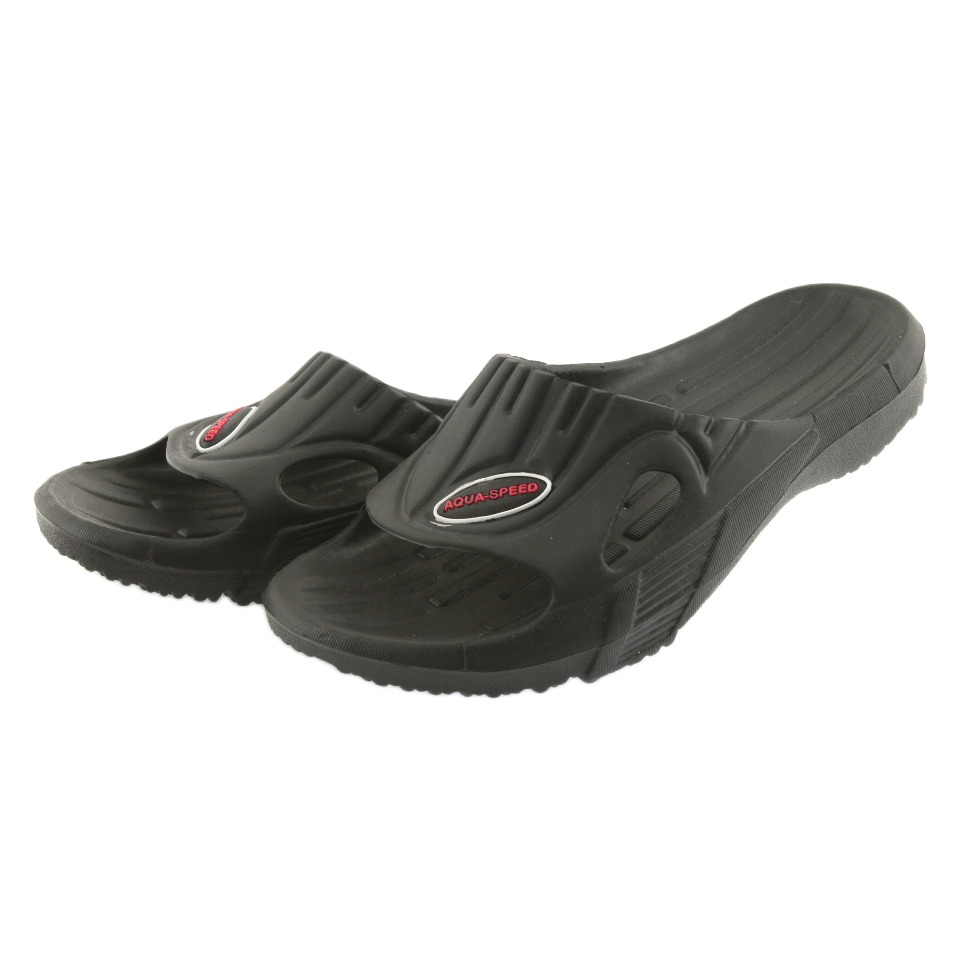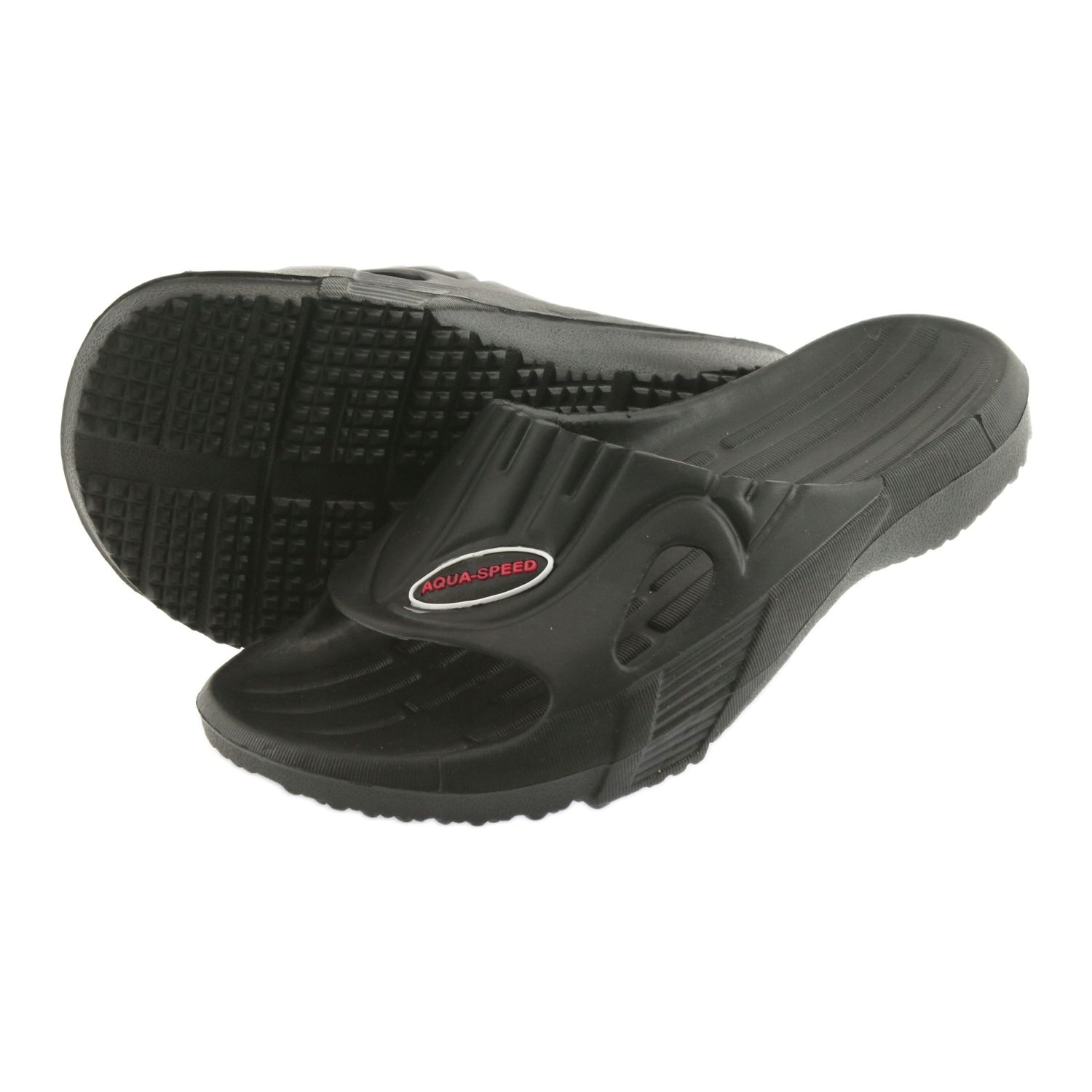 A kiváló minőségű anyagokból készült Aqua-Speed papucsokat EVA hab jellemzi a talpban, amely kiváló párnázást és könnyedséget biztosít, így rendkívül kényelmes viselet. Uniszex kialakításuknak köszönhetően nők és férfiak számára egyaránt alkalmasak. A papucsoknak nincs orra, ami növeli a használat kényelmét és megkönnyíti a felhelyezésüket nedves körülmények között.