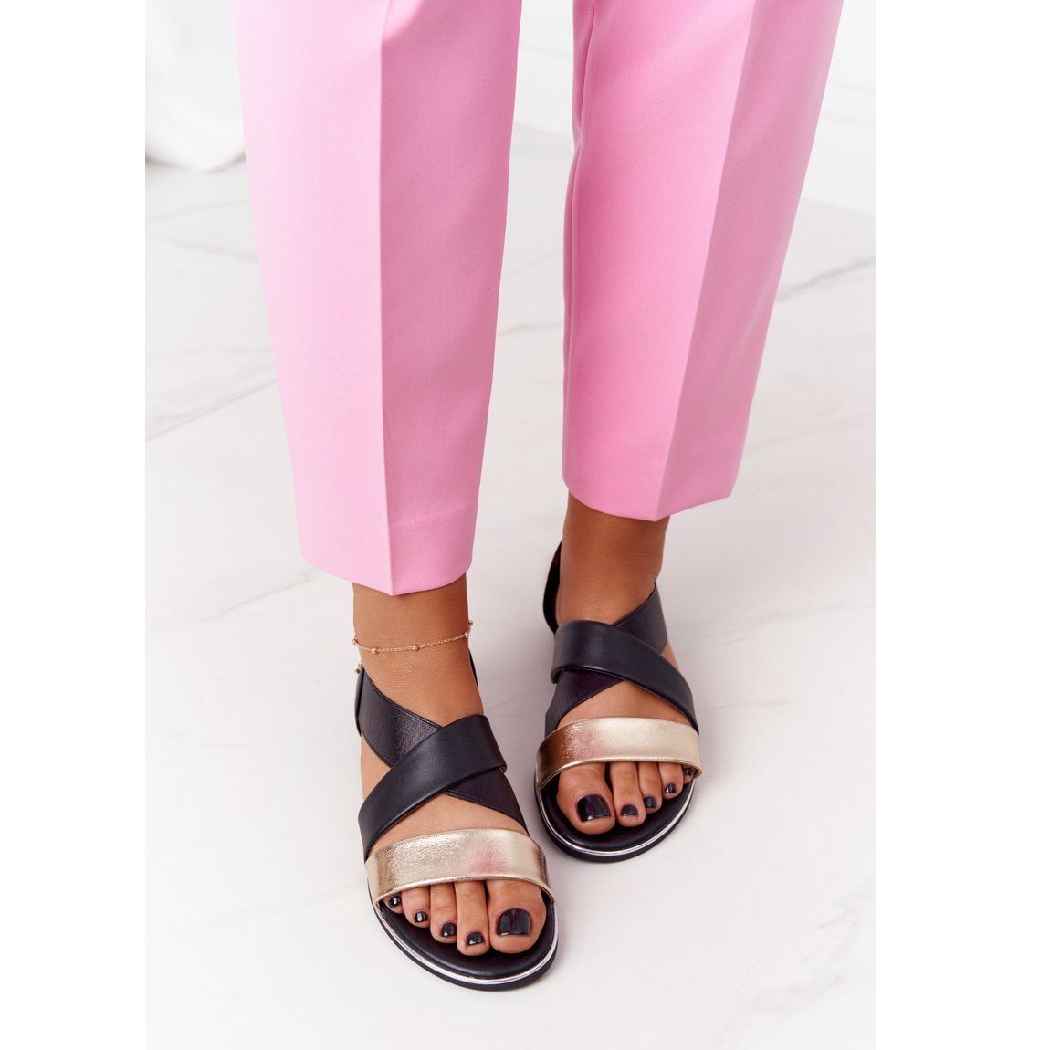 Fedezze fel az eleganciát és a kényelmet a Puglia sorozat egyedi, arany és fekete árnyalatú EVE szandáljában! Ez a kiváló minőségű ökológiai bőrből készült stílusos női szandál a divatos dizájnt a funkcionalitással ötvözi. Az elasztikus mandzsettának köszönhetően tökéletesen illeszkednek a lábfejhez, így kényelmes viselet egész nap.