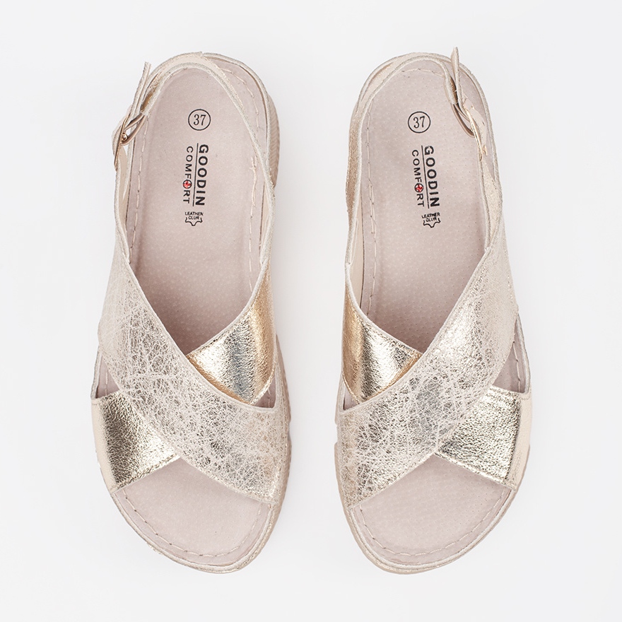 Az arany színű goodin szandál nagyszerű választás azoknak a nőknek, akik az eleganciát és a kényelmet akarják kombinálni. Kiváló minőségű ökológiai bőrből készültek, ezek a lapos szandálok minden bizonnyal megragadják a szemét modern, fémes megjelenésükkel.