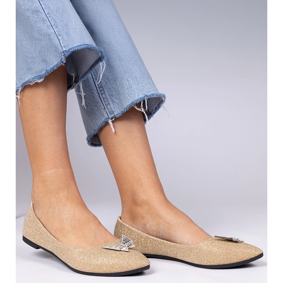 Részletek: Arany női csillogó balerinák pillangóval aranysárga