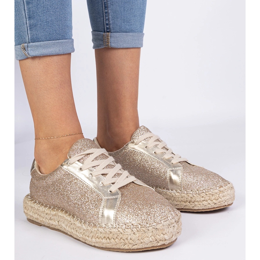 Részletek: Arany női espadrilles csillogással díszített aranysárga