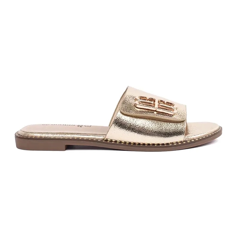 Goodin Goodin Arany női papucs leplop egy lapos talppal díszítéssel aranysárga