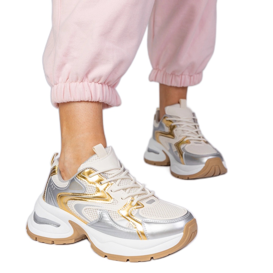 Részletek: Arany sportos cipők egy vastag talpon aranysárga