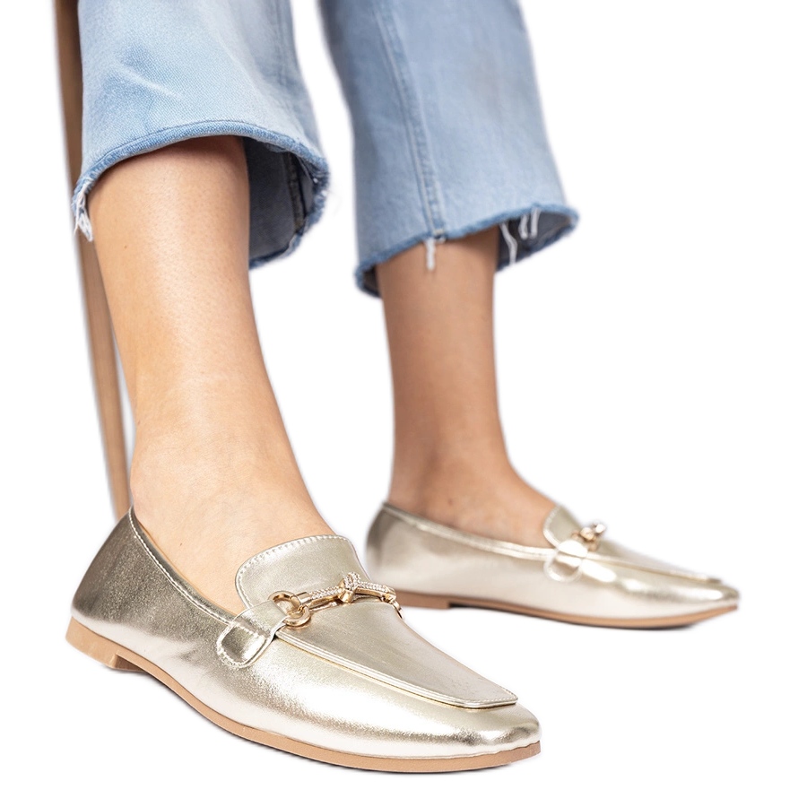 Inna marka Aranyos, elegáns cipők arany dekorációval és cirkonokkal aranysárga