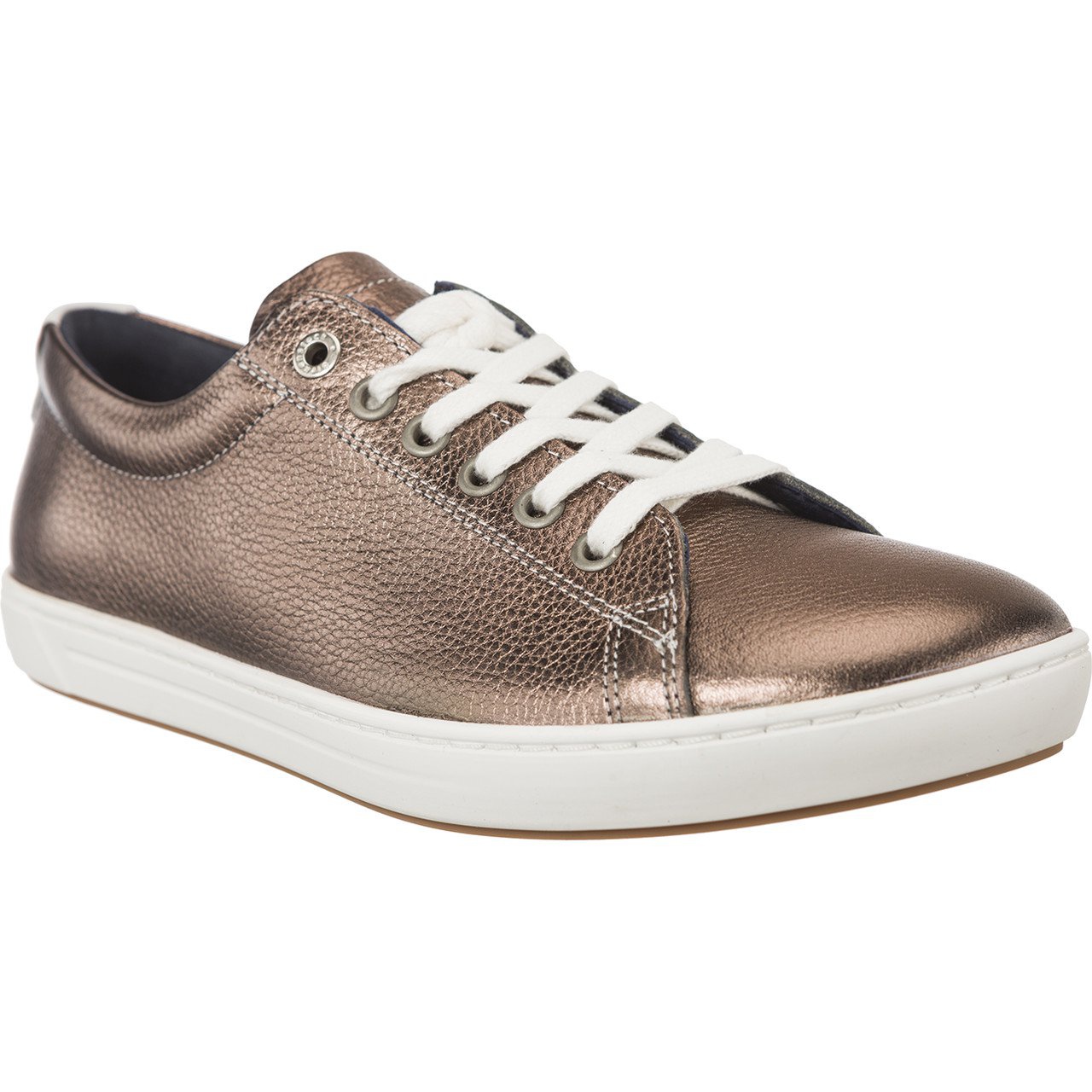 Birkenstock Arran 1007043 - barna cipő, amely egyesíti a kényelmet az eleganciával. Ez az ajánlat azoknak a nőknek szól, akik értékelik a minimalista dizájnt és a legjobb minőségű anyagokat. A természetes bőr felsőrész fémes bronz bevonattal finom fényt kölcsönöz a cipőknek – tökéletes, ha stílusosnak szeretne kinézni, de nem feltűnő.