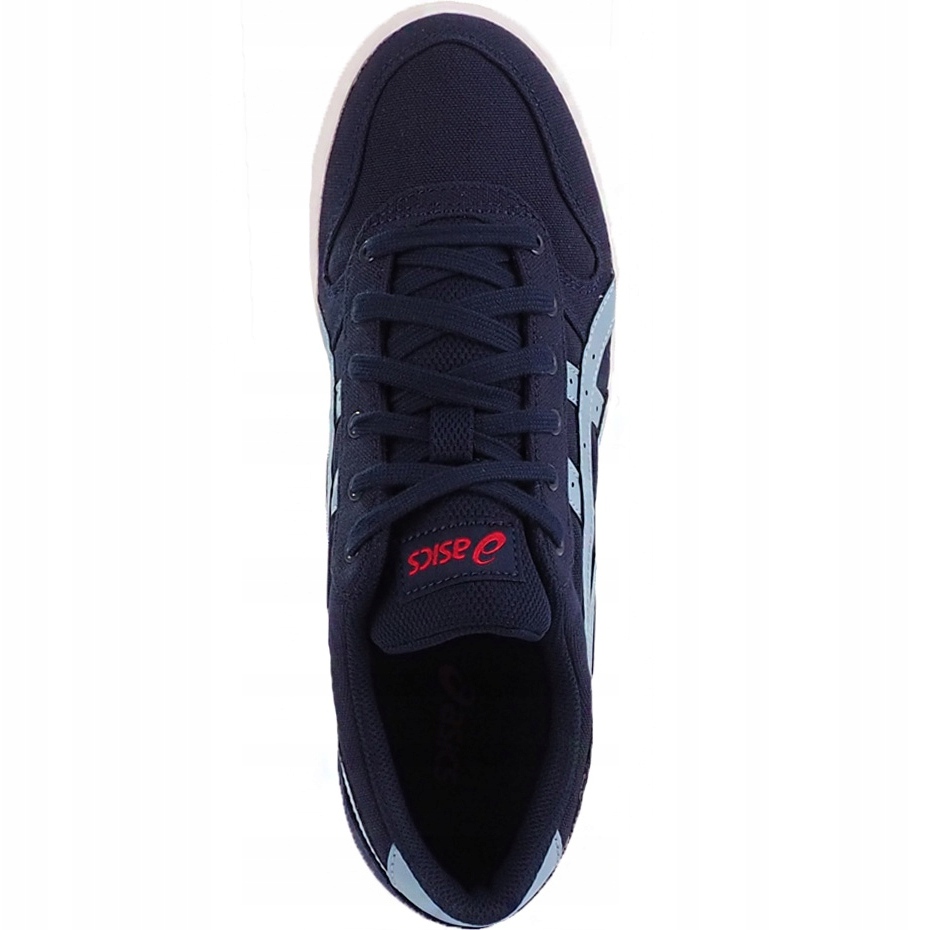 Klasszikus, kényelmes városi cipő Asics Aaron univerzális sötétkék színben - tökéletes minden nap, sétákhoz és alkalmi stilizációkhoz. A magas színvonalú anyagból készült felső felsõ anyag tiszta megjelenést kínál, és egy gumi, a szintetikus talp garantálja a jó tapadást és a tartósságot.