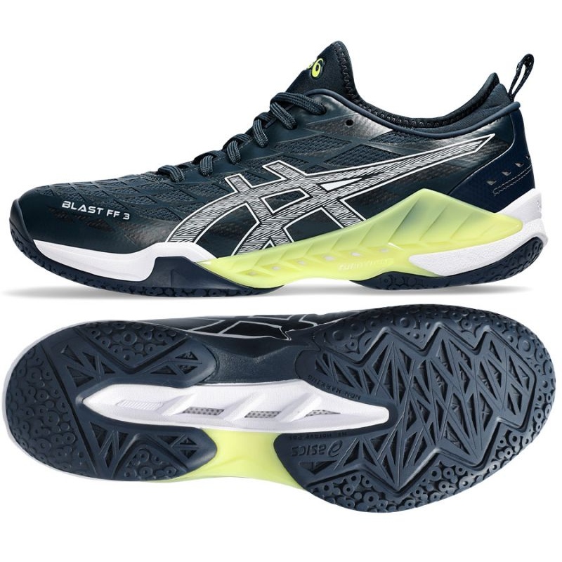 Az ASICS BLAST FF 3 M 1071A076-401 praktikus és tartós beltéri cipő, sötétkék színű, amelyet egy kézilabdavonat, tapadás és védelem igényes játékához terveztek, ahol a leginkább szükségük van.