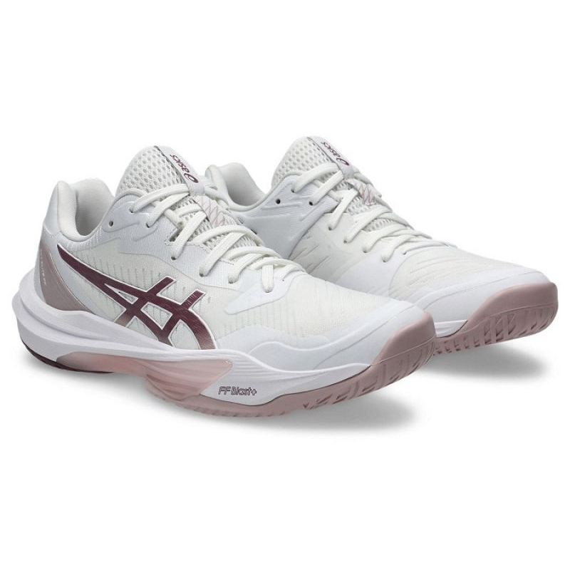 Bemutatjuk az Asics Sky Elite FF 3 röplabda cipőt (1052A0751 01 modell), elegáns fehér színű, rózsaszín akcentussal. Ezek a technológiailag fejlett cipők minden röplabda játékoshoz szükséges felszereléssé válnak, és a pályán való tökéletességre törekszenek.